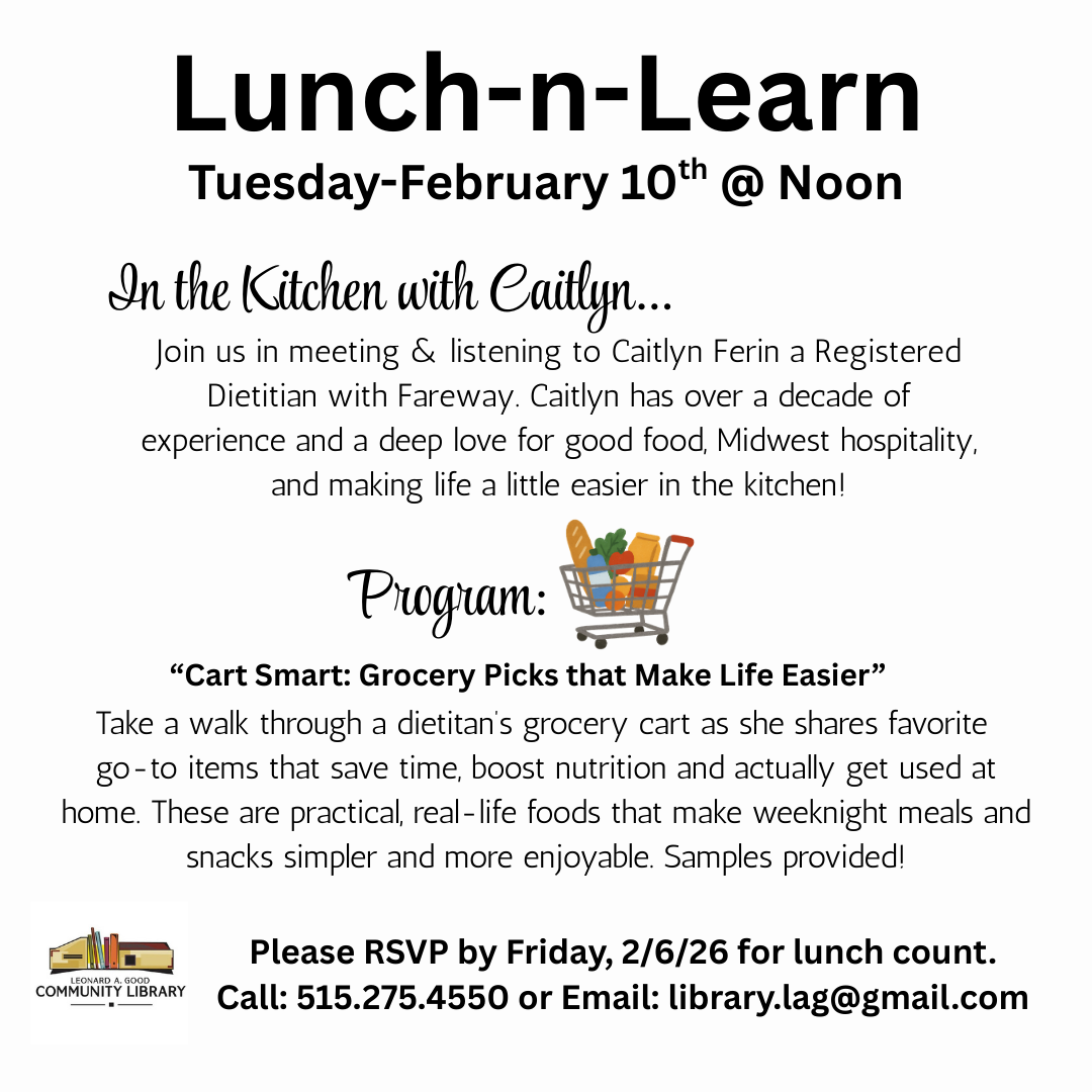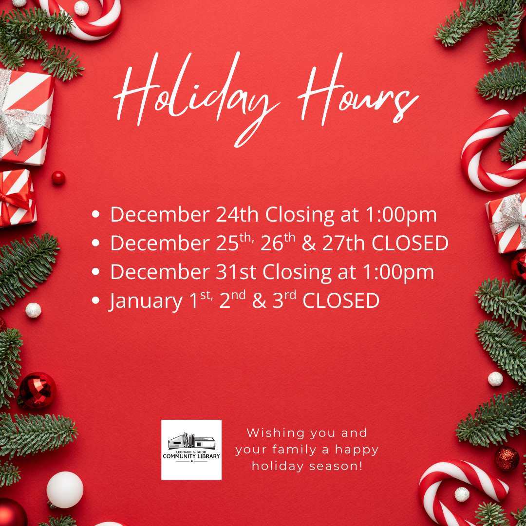 Welcome to the Leonard A. Good Community Library. The library is your one stop source for all of your informational needs. We have a large selection of books, magazines, newspapers, and electronic resources available to be checked out by our library card holders. Here you will also find electronic resources, news, announcements, and a calendar of upcoming library events!